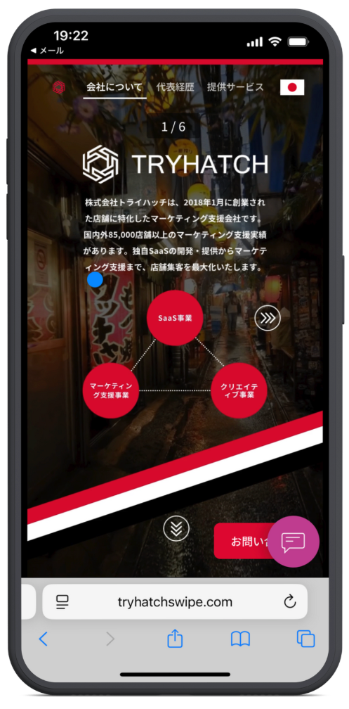 スワイプ型HPとは、SNSのように直感的な操作で、縦方向だけでなく横方向にも自在にスクロールできる次世代型のホームページです。従来型の縦スクロール中心のホームページに比べ、SNSで日常的に使われているスワイプ操作を取り入れることで、視覚的にコンテンツの魅力を伝えることができます。